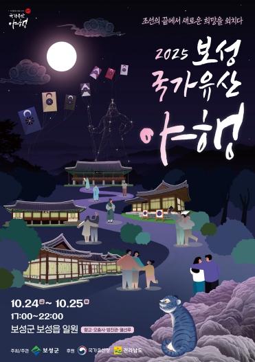 [중앙뉴스라인, 우제헌기자] 보성군은 오는 10월 23일과 24일 이틀간 오후 5시부터 10시까지 보성읍 일원에서 ‘2025 보성 국가유산 야행’을 개최한다고 밝혔다.