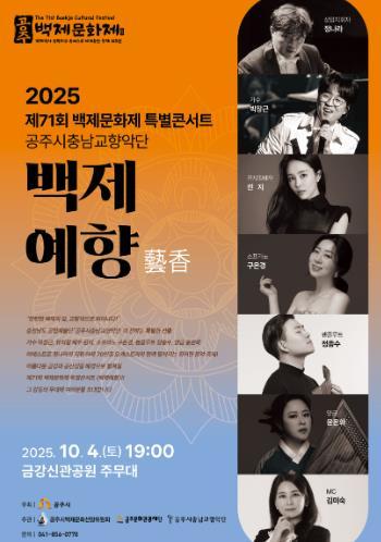 [중앙뉴스라인, 우제헌기자] 공주시충남교향악단은 제71회 백제문화제를 맞아 오는 10월 4일 저녁 7시, 공주 금강신관공원 주무대에서 특별콘서트 ‘백제 예향’을 개최한다고 밝혔다.