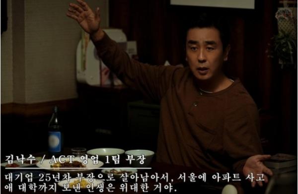 이런 가운데 공개된 사진 속에는 ACT 영업 1팀 부장 김낙수의 치열한 일상생활이 담겨 있다.