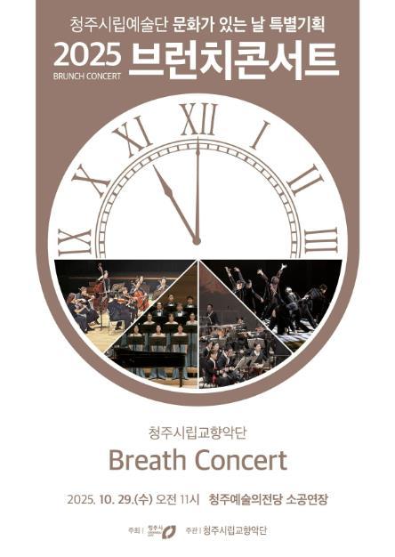 [중앙뉴스라인, 우제헌기자] 청주시립교향악단은 오는 29일 오전 11시 청주예술의전당 소공연장에서 ‘브런치콘서트–Breath Concert’를 공연한다.