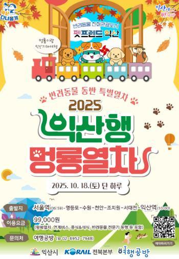 익산시는 오는 18일 운행되는 '2025 익산행 멍룡열차' 참가자를 모집한다고 2일 밝혔다.