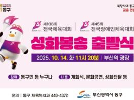 [중앙뉴스라인, 우제헌기자] 부산동구는 오는 10월 14일, 제106회 전국체육대회 및 제45회 전국장애인체육대회의 성공적인 개최를 기원하고 대회의 시작을 알리는 성화봉송 출발식행사를 개최한다고 밝혔다.