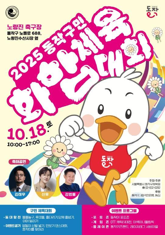[중앙뉴스라인, 우제헌기자] 동작구가 오는 18일 오전 10시 노량진축구장(노들로 688)에서 ‘2025 동작구민 화합 체육대회’를 개최한다고 밝혔다.