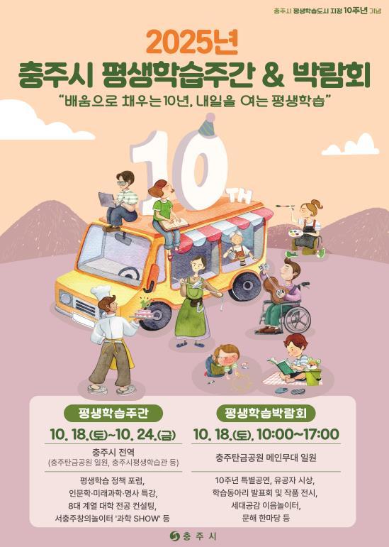 [중앙뉴스라인, 우제헌기자] 충주시는 평생학습도시 지정 10주년을 맞아 오는 18일부터 24일까지 '2025년 충주시 평생학습주간'을 개최한다고 14일 밝혔다.