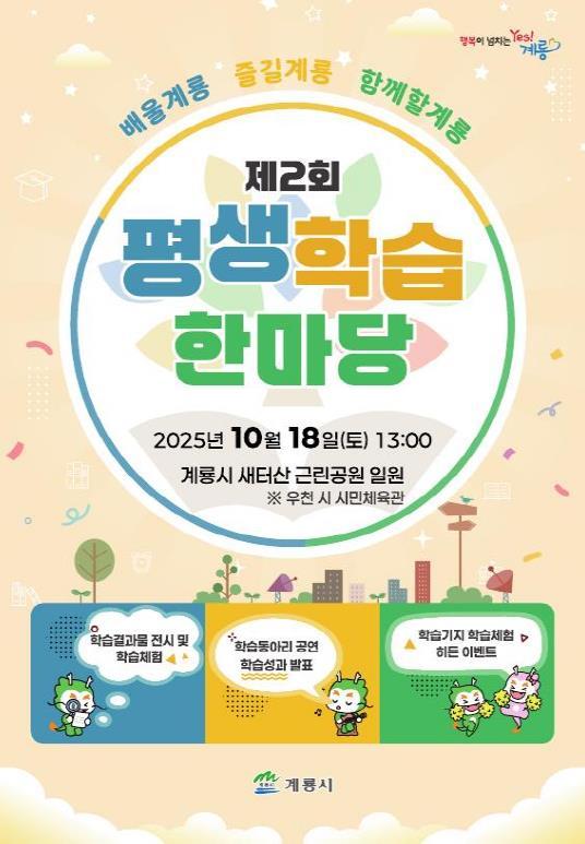 [중앙뉴스라인, 우제헌기자] 계룡시는 오는 18일 오후 1시부터 시청 앞 새터산 근린공원에서 시민이 주도하는 배움의 축제 “2025 제2회 계룡시 평생학습 한마당”을 개최한다고 밝혔다.
