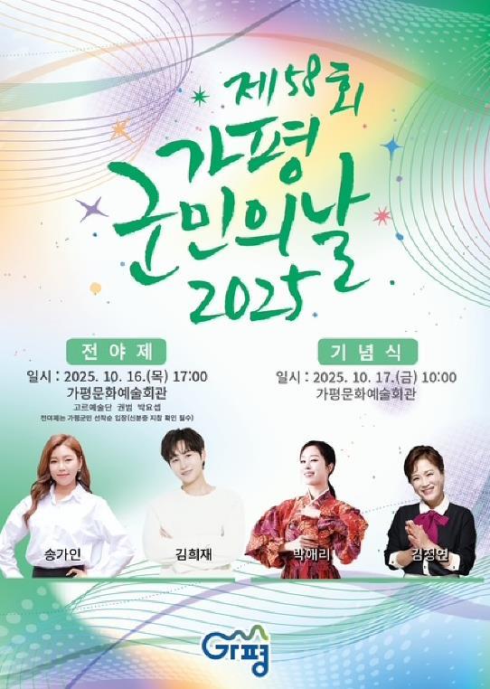 [중앙뉴스라인, 우제헌기자] 가평군은 오는 16일 오후 5시, 새롭게 리모델링을 마친 가평문화예술회관에서 ‘제58회 가평군민의 날 전야제’를 개최한다. 이번 행사는 ‘다시, 가평으로’를 슬로건으로 내세워 수해 극복과 지역 재도약을 기원하며 군민 화합의 의미를 담아 열린다.