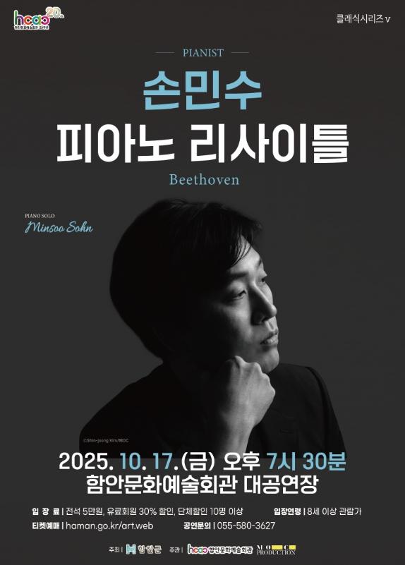 [중앙뉴스라인, 우제헌기자] 함안군은 깊은 음악성을 지닌 피아니스트 손민수가 오는 10월 17일 함안문화예술회관 대공연장에서 열린다고 밝혔다.