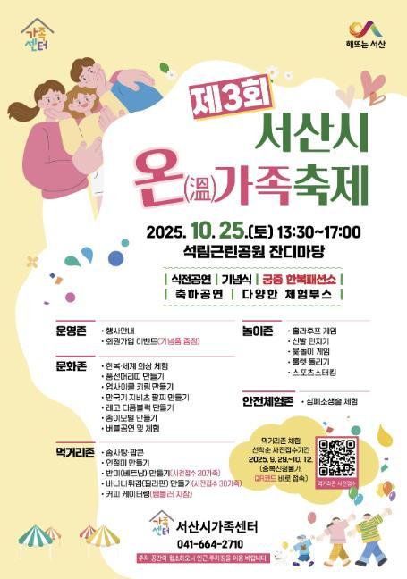 [중앙뉴스라인, 우제헌기자] 충남 서산시는 오는 10월 25일 석림근린공원 잔디마당 일원에서 제3회 온(溫)가족 축제를 개최한다고 밝혔다.