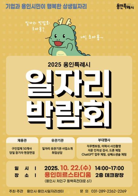 [중앙뉴스라인, 우제헌기자] 용인특례시는 오는 22일 오후 2시부터 5시까지 용인미르스타디움 2층 덱(deck) 광장에서 2025년 하반기 일자리박람회를 개최한다고 17일 밝혔다.