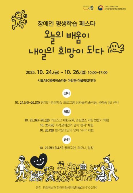 [중앙뉴스라인, 우제헌기자] 시흥시는 오는 10월 24일부터 26일까지 3일간, 시흥ABC행복학습타운 아람관과 어울터 일원에서 ‘2025 장애인 평생학습 페스타’를 개최한다.