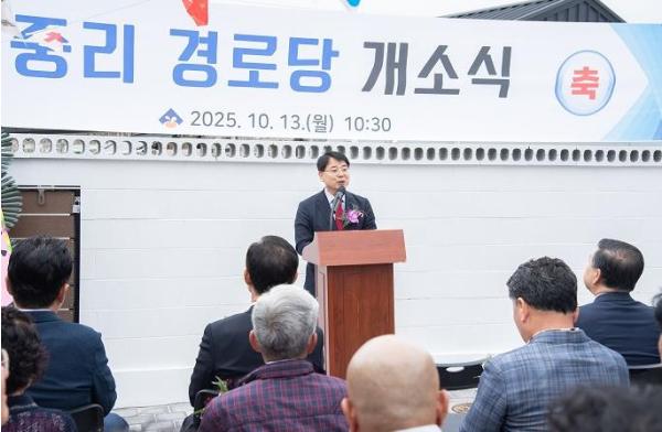 중리경로당(두구중리2길 21)은 단독주택 용도로 사용되던 건물을 매입하여 지상 1층, 연면적 164㎡의 노인여가복지시설로 조성하여 지난 10월 준공했다.