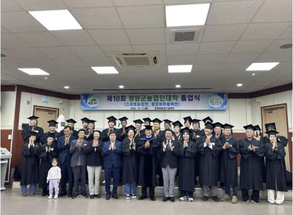 [중앙뉴스라인, 우제헌기자] 청양군농업기술센터는 지난 17일 농업기술센터에서 제18기 청양군농업인대학 스마트농업반 졸업식을 개최했다고 밝혔다.