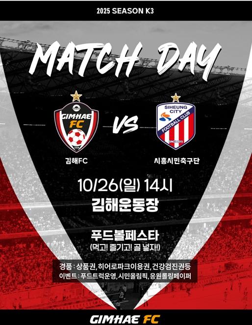 [중앙뉴스라인, 우제헌기자] 2025년 K3리그 현재 1위를 달리고 있는 김해FC2008 (이하'김해FC')가 오는 26일 김해운동장에서 시흥시민축구단과의 홈 경기를 펼친다.