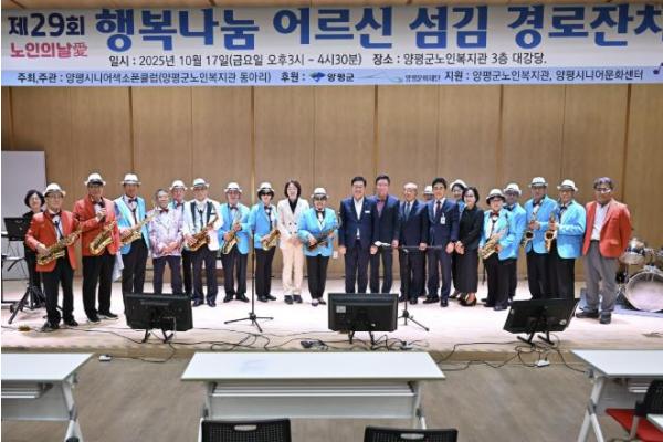 이번 행사는 양평문화재단의 2025 생활문화공동체지원사업에 선정된 양평시니어색소폰클럽(단장 길재숙)이 주관하는 사회 공헌 콘서트로, 제29회 노인의 날을 기념해 지역 어르신들에게 감사와 위로를 전하기 위해 마련됐다.