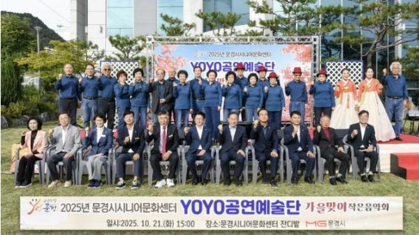 [중앙뉴스라인, 우제헌기자] 문경시 시니어문화센터는 지난 21일 300여 명의 관람객이 찾은 가운데 시니어문화센터 앞 광장에서 23명의 어르신들이 취미 활동으로 갈고닦은 실력을 뽐내는 ‘2025년 문경시 시니어문화센터 YOYO공연예술단 가을맞이 작은 음악회’를 열었다.