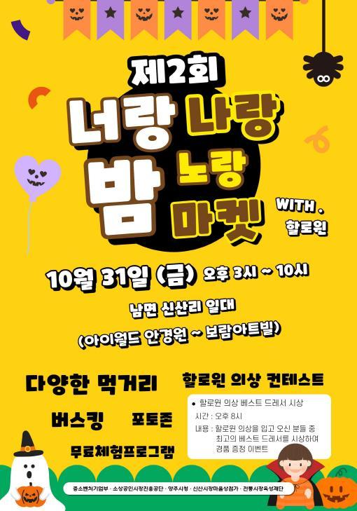 [중앙뉴스라인, 우제헌기자] 양주시가 신산시장마을번영회와 공동 주관으로, 오는 31일 남면 상가거리(개나리길 74 일원)에서 “제3회 너랑나랑노랑 밤 마켓” 축제를 개최한다.