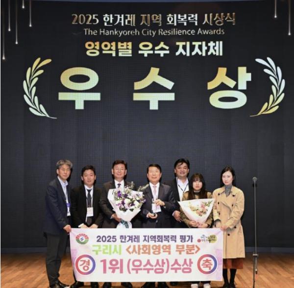 [중앙뉴스라인, 우제헌기자] 구리시는 지난 23일 대한상공회의소에서 열린 ‘2025 한겨레 지역회복력 평가’ 시상식에서 사회영역 부문 1위를 차지하며 우수상을 받는 쾌거를 거뒀다.