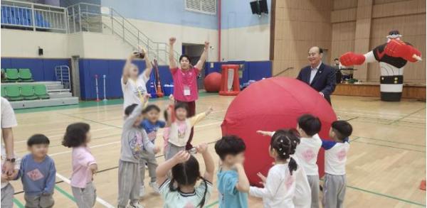이번 행사는 원아와 보육교직원이 함께 참여해 경쾌한 음악에 맞춰 준비체조를 하고, 줄다리기·공던지기 등 단체게임을 즐기며 웃음과 활력이 넘치는 시간을 보냈다. 행사장에는 에어바운스, 레일기차, 바이킹 등 다양한 실외 놀이시설이 설치돼 연령별 어린이들이 안전하게 마음껏 뛰어놀 수 있도록 했다.