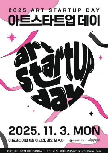 문화체육관광부(장관 최휘영)가 주최하고 예술경영지원센터(대표 김장호)가 주관하는 ‘2025 아트 스타트업 데이’가 오는 11월 3일(월) 서울 종로구 아트코리아랩(Arts Korea Lab)에서 개최된다.
