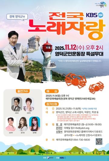한편, 이번 영덕군편 방송은 내년 3월경 방영될 예정이다. 접수 및 행사 관련 문의는 예주문화예술회관으로 하면 된다.