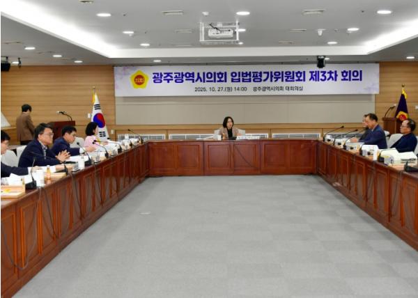 [중앙뉴스라인, 김효현기자] 광주광역시의회는 10월 27일 시의회 대회의실에서 입법평가위원회 제3차 회의를 개최하고, 2025년도 입법평가 연구용역 최종보고회를 진행했다.