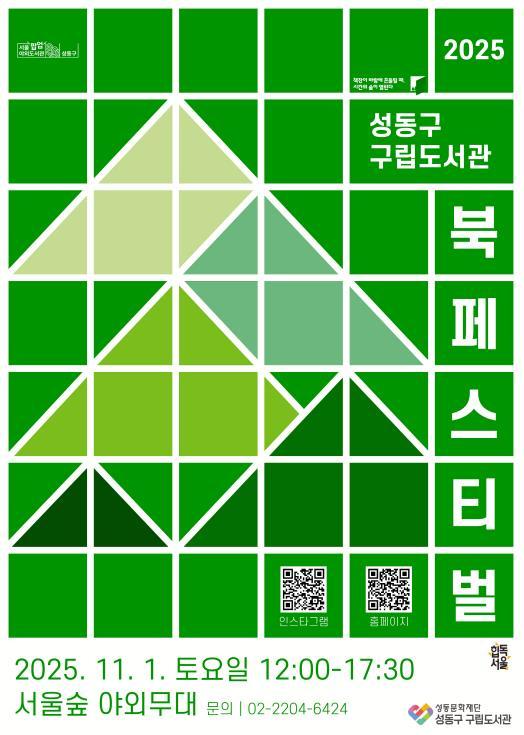 성동구 구립도서관은 다함께 만드는 축제를 위해 북 페스티벌 캐치프레이즈와 주제도서 투표도 진행했다. 총 2,395명이 참여한 결과, 캐치프레이즈는 ‘책장이 바람에 흔들릴 때, 시간의 숲이 열린다’, 주제도서는 어린이·청소년 부문 『모모의 여름방학』, 성인 부문 『언젠가 우리가 같은 별을 바라본다면』이 선정됐다.
