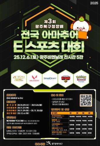 3일 북구에 따르면 오는 12월 6일 광주 비엔날레전시관에서 ‘제3회 광주 북구청장배 전국 아마추어 e스포츠 대회’가 열린다.