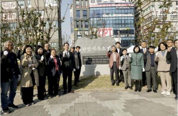 [중앙뉴스라인, 우제헌기자] 화성특례시 오산동 996-4번지 옛 동탄면사무소 자리에 표지석을 설치하고 지난 4일 제막식을 개최했다.