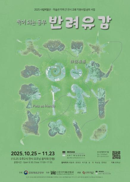 [중앙뉴스라인, 우제헌기자] 보령시는 강화 더리미미술관이 ‘2025년 사립 박물관·미술관 지역 간 전시 교류 지원사업’ 선정으로 충남 보령시에 위치한 모산조형미술관에서 11월 23일까지 교류 전시 ‘반려유감伴侶有感 : 짝이 되는 동무 Pets as friends’를 개최한다고 밝혔다.