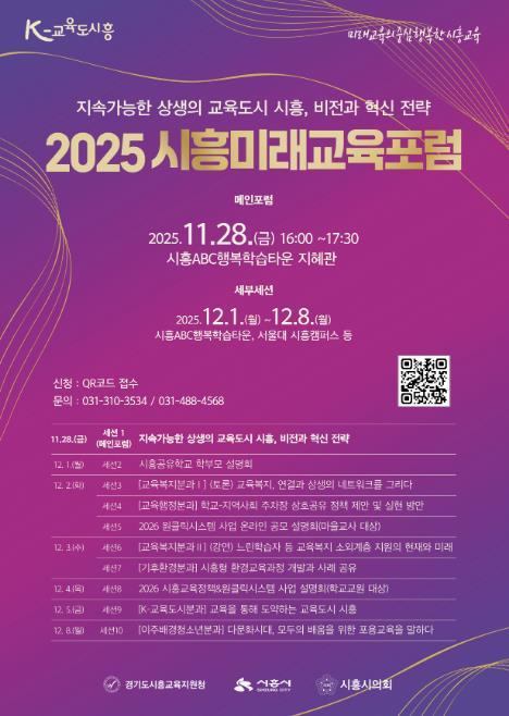 [중앙뉴스라인, 우제헌기자] 시흥시는 시흥교육지원청, 시흥시의회와 함께 오는 11월 28일부터 12월 8일까지 ‘2025 시흥미래교육포럼’을 진행한다.