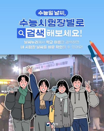 [중앙뉴스라인, 양병남기자] 날씨누리에서 학교 이름만 검색하면 내 시험장 날씨를 바로 확인할 수 있어요!