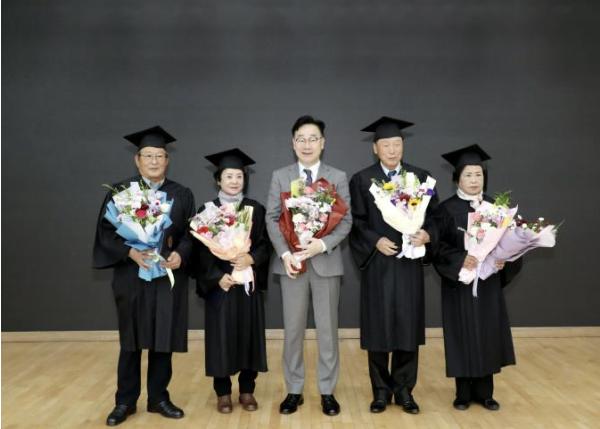 더불어, 수료생들은 후학 양성을 위한 장학금을 기탁해 배움의 가치를 지역사회와 나누었다. 수료생들의 정성을 모아 노인대학에서 100만 원, 노인대학원에서는 200만 원의 장학금을 기탁했으며, 이는 평생학습이 개인의 성장에 그치지 않고 지역사회의 선순환으로 이어지도록 하는 중요한 실천이 됐다.