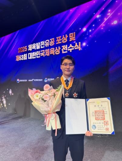 [중앙뉴스라인, 우제헌기자] 고양특례시 소속 직장운동경기부 세팍타크로팀의 임안수 선수가 지난 21일 서울 웨스틴조선호텔 그랜드볼룸에서 열린 ‘2025 체육발전유공 포상 및 제63회 대한민국체육상 전수식’에서 체육훈장‘맹호장’을 수훈했다.