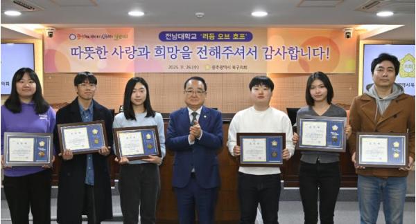 전남대학교 봉사동아리 회원 6명 북구의장상 수여