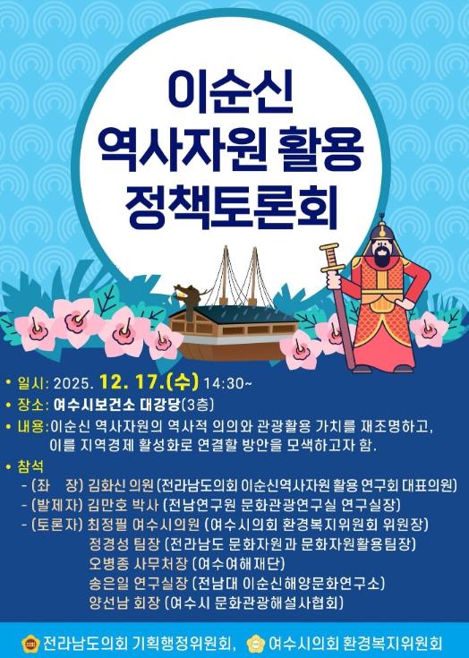 여수시의회, 오는 17일 ‘이순신 역사자원 활용 정책토론회’ 개최