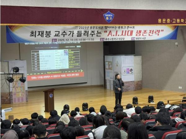 이날 강연에는 용문고등학교 학생 400여 명이 참여해 디지털 대전환 시대를 살아갈 청소년들의 미래 역량을 키우는 기회를 가졌다.