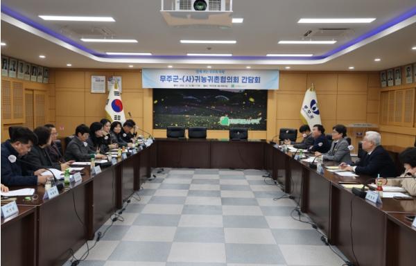 이번 간담회는 귀농·귀촌인이 정착 과정에서 겪는 어려움들을 공유하고 개선 방안을 논의하기 위해 마련됐으며, 황인홍 무주군수를 비롯한 무주군귀농귀촌협의회 임원진 등 20여 명이 함께해 의미를 더했다.