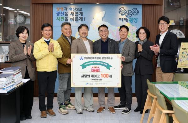 (사)대한제과협회 광주·전남지회 광산구지부(지부장 정형태)는 지난 15일 이웃 사랑 실천을 위해 직접 만든 사랑의 케이크 100개를 광산구에 전달했다.