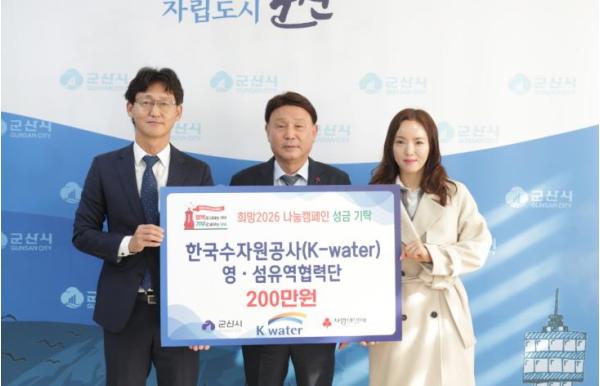 [중앙뉴스라인, 김용범기자] 한국수자원공사 영·섬유역협력단이 연말을 맞아 취약계층과 따뜻한 정(情)을 나누고자 기부금 200만 원을 22일 군산시에 전달했다.