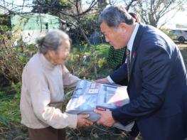 이날 김 시장은 제주도사회복지공동모금회의 후원으로 일상생활에서 사용할 수 있는 제주지역화폐 탐나는전을 전달했다. 또한 한국에너지공사가 지원한 전기매트도 함께 제공하며 홀로 사는 주거취약가구가 보다 건강하고 따뜻하게 겨울을 보낼 수 있도록 힘을 보탰다.