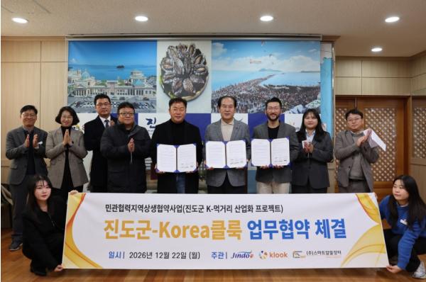 진도군은 지난 22일에 ‘클룩 트래블테크놀러지’와 업무협약을 체결하고, 국토교통부의 민관협력 지역상생 협약 사업 ‘케이-먹거리 산업화 프로젝트’를 본격적으로 추진한다.
