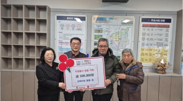 [중앙뉴스라인, 김용범기자] 부안군 줄포면 고부이씨집의공파사직공회(회장 이수홍, 고문 이종표)가 지난 26일 줄포면 지역사회보장협의체에 기부금 50만원을 전달했다.