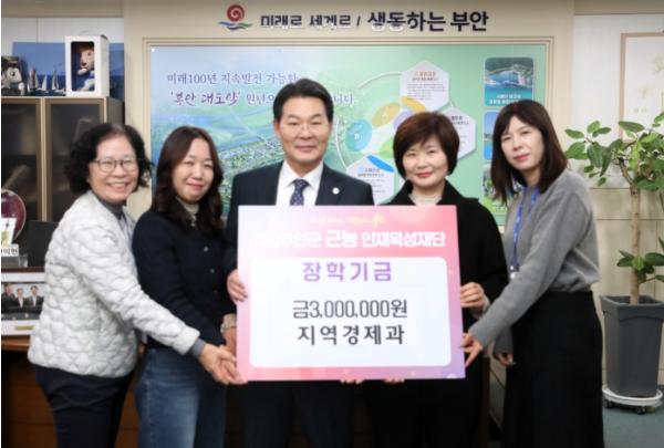 한편, 부안군근농인재육성재단은 대학 반값등록금 지원을 비롯해 다자녀장학금, 특기장학금, 대학 비진학 청년 취업‧창업 지원금, 봉사활동장학금 등 다양한 장학사업을 운영하며 학부모의 학비 부담을 경감하고 학생들이 미래를 설계할 수 있도록 지원하고 있다.