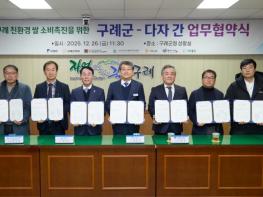 한편, 이날 협약식에는 구례군 친환경 농업단체(산수유골영농조합법인·오메가3영농조합법인·구례군친환경영농협회) 회원 등 50여 명이 함께 했다.