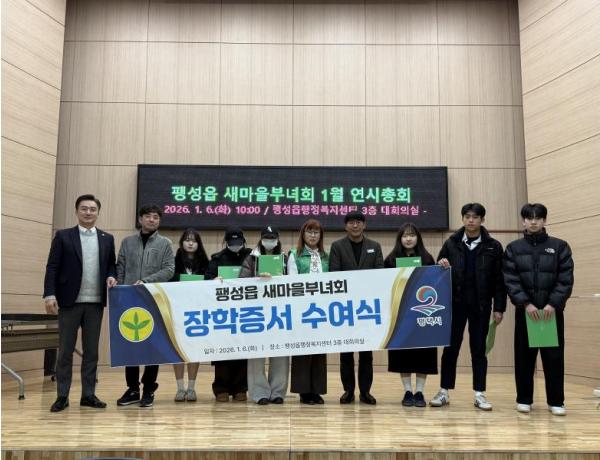 박성애 팽성읍 새마을부녀회 총회장은 “이번 장학금 및 장학증서 수여를 통해 학생들의 노력에 작은 응원을 보낼 수 있어 뜻깊다”며 “앞으로도 지역 미래를 이끌어 갈 인재 양성을 위해 지속적인 관심과 지원을 이어가겠다”고 밝혔다.