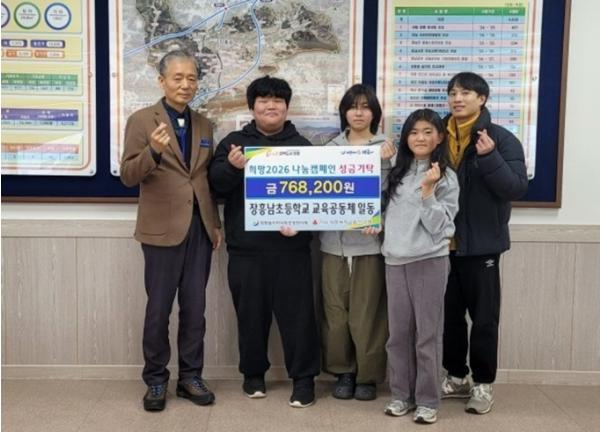 [중앙뉴스라인, 전은희기자] 장흥남초등학교 학생들이 지난 7일 장흥읍행정복지센터를 찾아 ‘2026 희망나눔캠페인’ 성금 768,200원을 기탁했다.