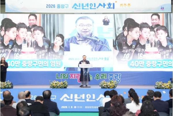 [중앙뉴스라인, 우제헌기자] 중랑구가 지난 9일 오후 중랑문화체육관에서 구민 1,200여 명이 참석한 가운데 2026년 신년인사회를 개최했다.