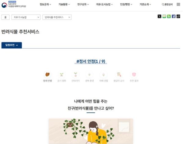 국립원예특작과학원 누리집 ‘치유·도시농업→반려식물 추천 서비스’에서 누구나 서비스를 이용할 수 있다.