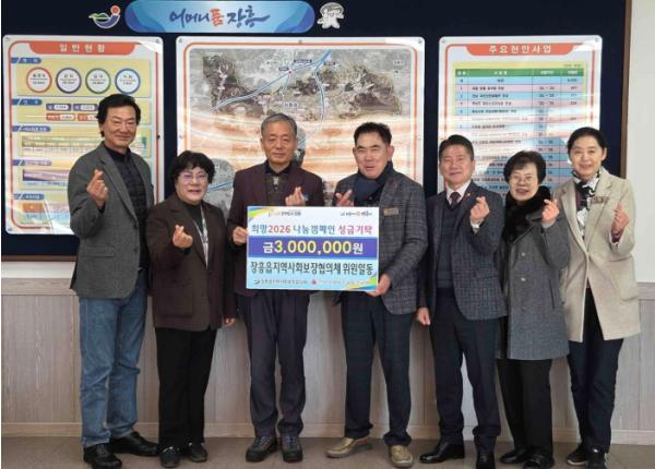 [중앙뉴스라인, 전은희기자] 장흥군 장흥읍지역사회보장협의체(공동위원장 김주호, 강경일)는 12일, 2026 병오년 새해를 맞아 희망나눔 이웃돕기 성금 3백만원을 기탁했다.