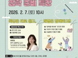 학부모 특강은 ‘어디든 학교’ 유튜브 채널을 운영 중인 현직 초등학교 교사 하유정 강사가 ‘내 아이의 첫 학교생활’을 주제로 진행한다. 강의 후에는 질의응답 시간을 통해 입학 준비와 학교 적응과 관련된 학부모들의 궁금증을 해소할 예정이다.